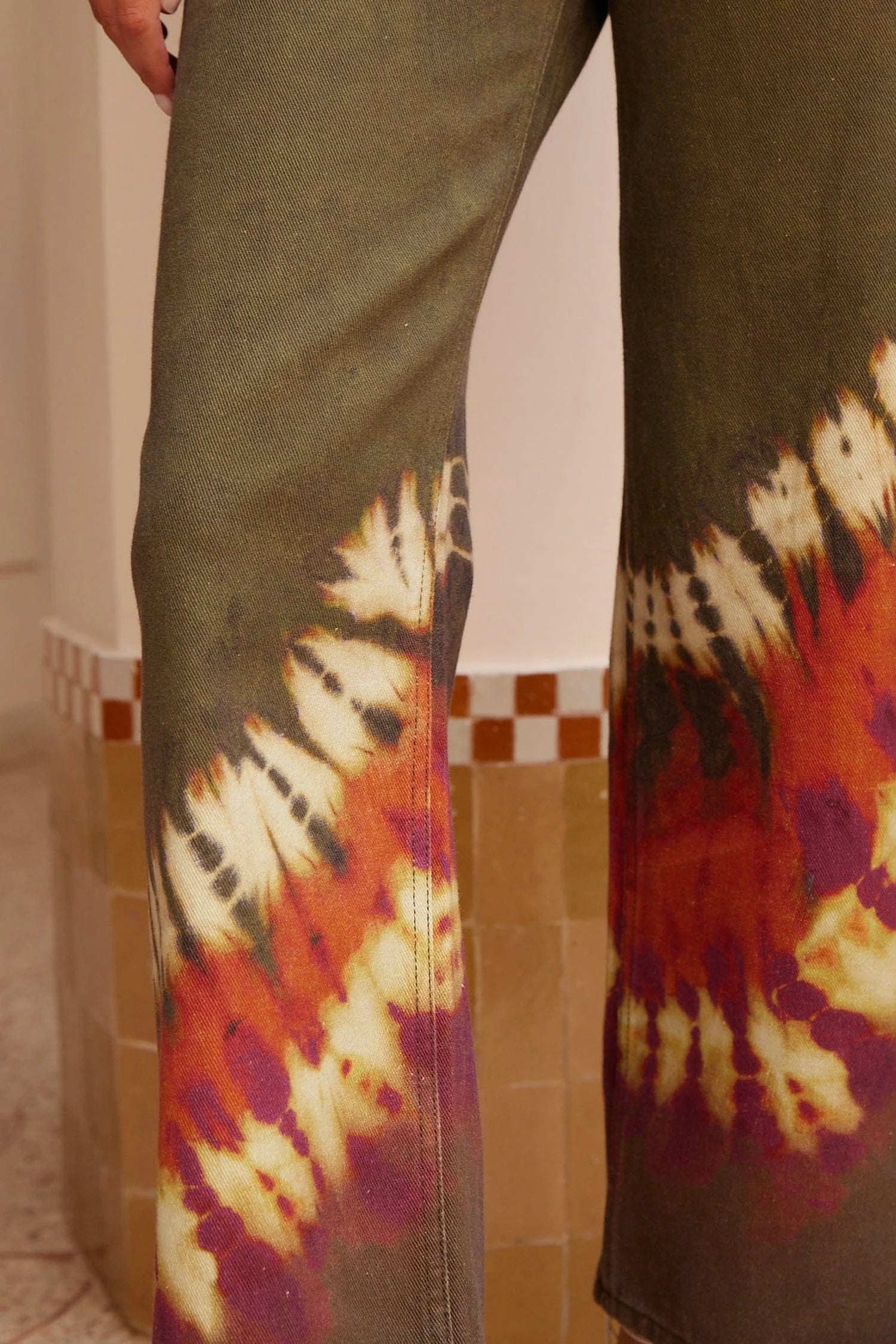 Wash inside out on a gentle cold cycle. Line-dry in the shade to preserve colour. Warm iron if needed. Avoid tumble-drying to maintain fabric integrity.