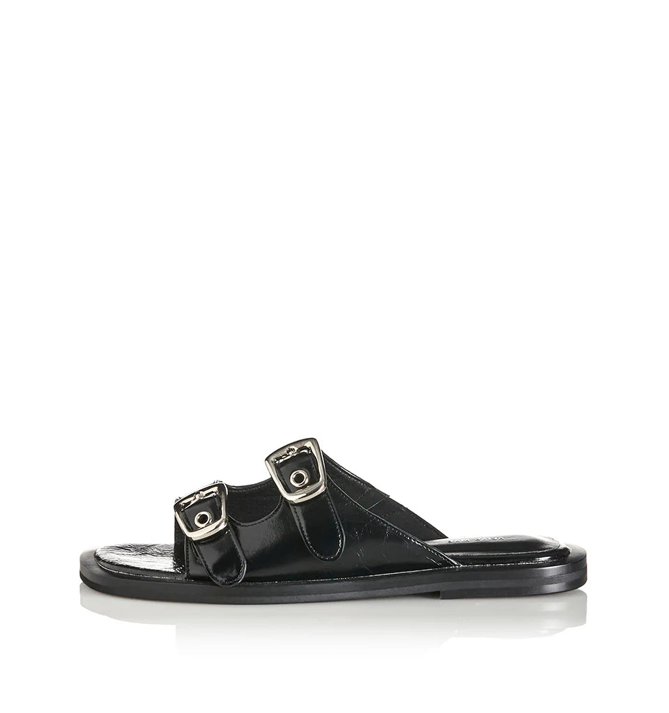 Understated and timeless, the Ellis slide in black oily leather is designed for effortless everyday wear. Featuring a double-buckle upper with a flat sole, it balances comfort with a clean, minimal edge — the perfect staple for city streets, weekend escapes, and relaxed evenings.