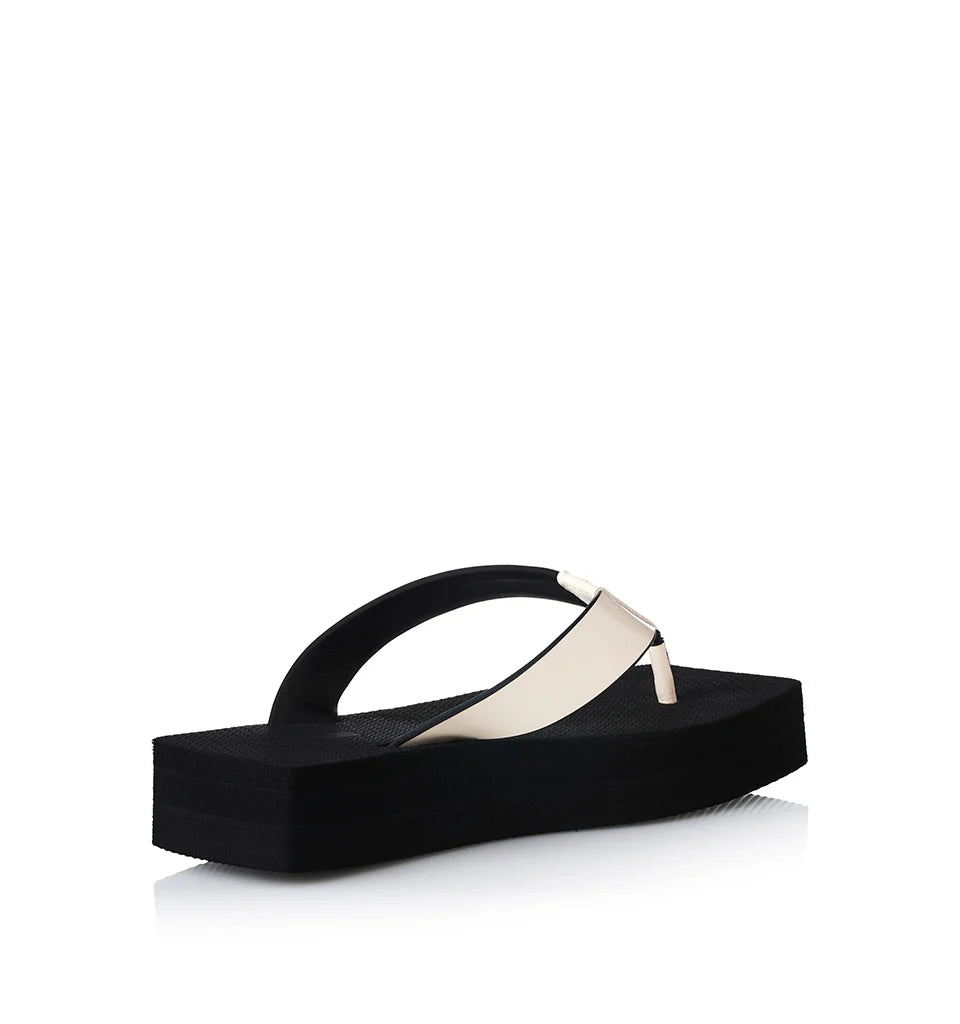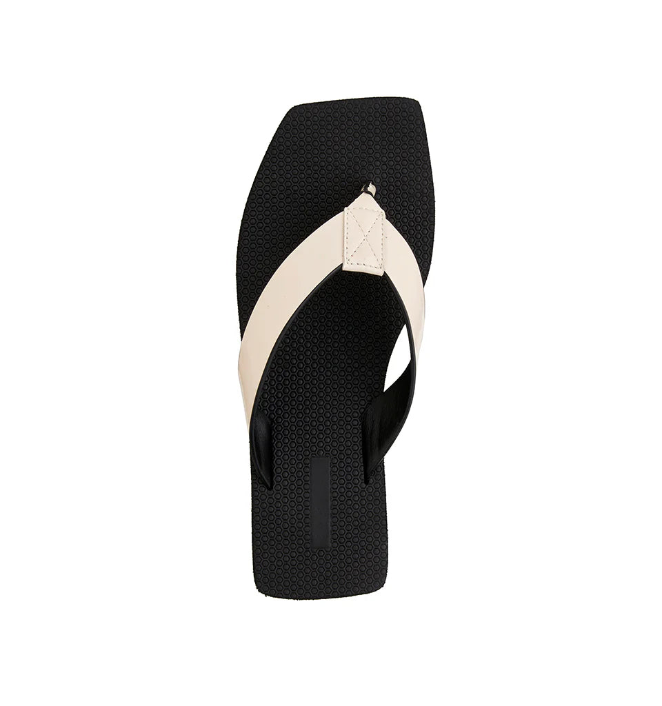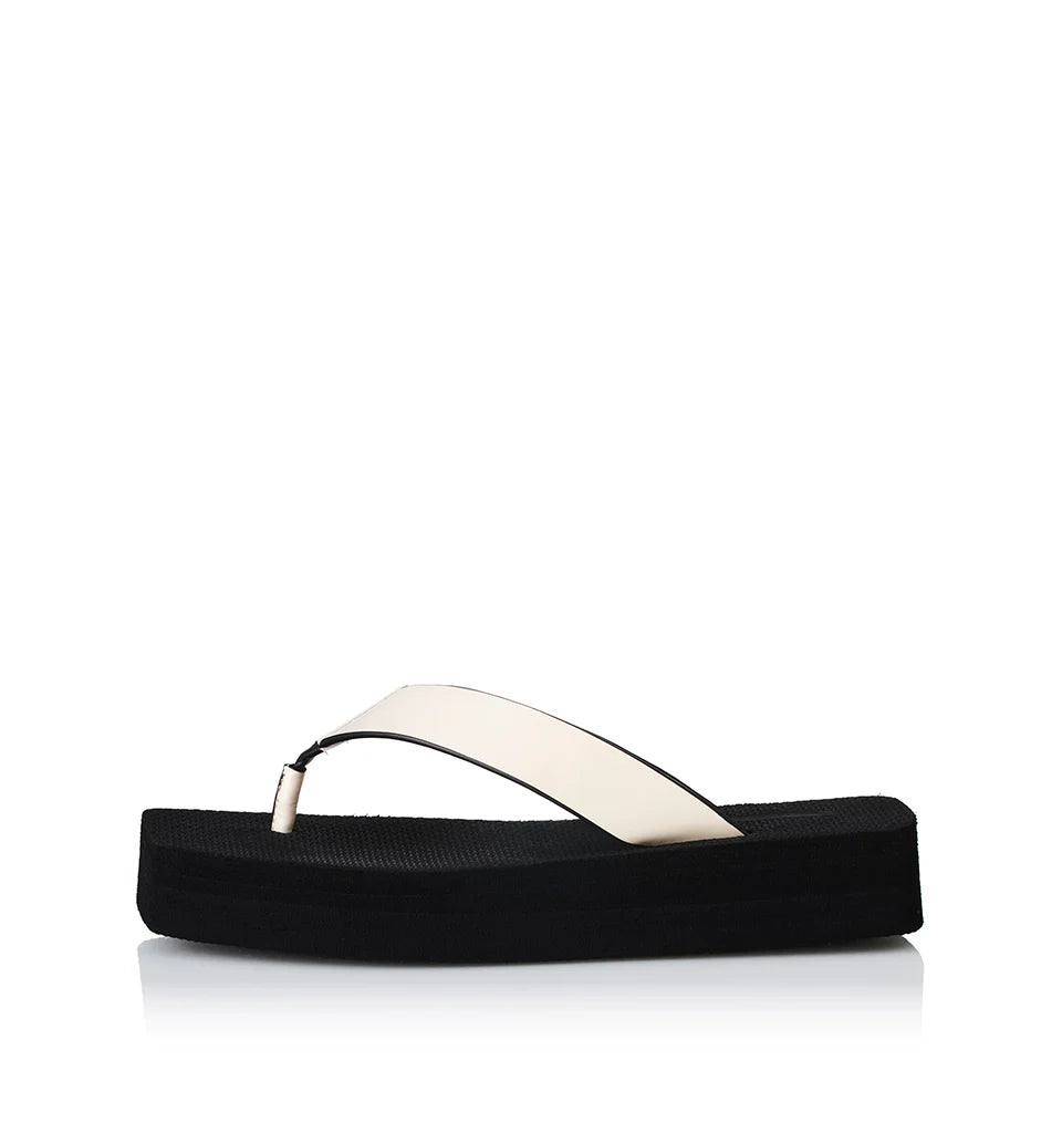• Smooth leather thong upper in soft bone hue